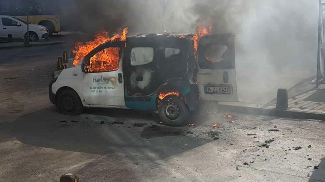 Gaziosmanpaşa Yeşilpınar Mahallesi’nde saat 15.00 sıralarında iddiaya göre, yaklaşık bir aydır sahibinin park halinde bıraktığı ve kapıları açık olan hafif ticari araç henüz bilinmeyen bir nedenle alev aldı.